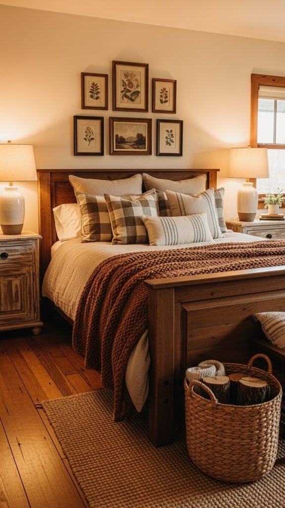 Rustic bedrooms focus on natural materials and a cozy, lived-in feel. Wood furniture, warm colors, and textured fabrics are common.