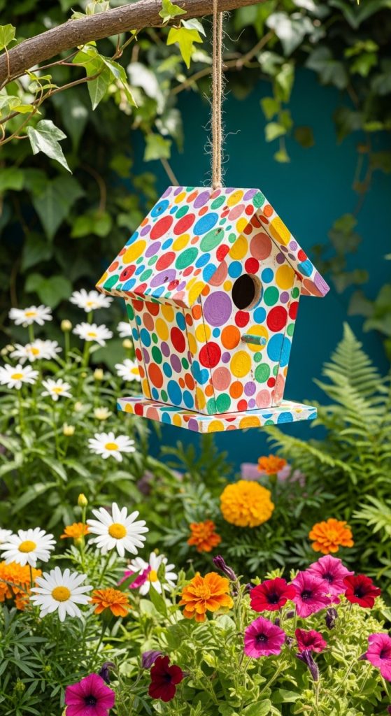 Idea 6: Polka Dot Painted Birdhouse