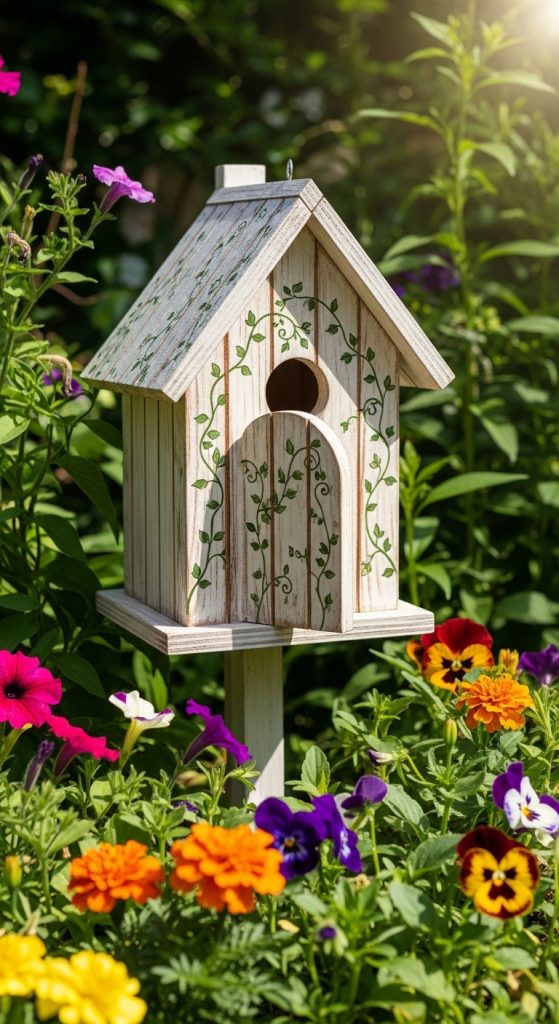 Painted birdhouses also provide flexibility in design. They can reflect many decorative styles including rustic garden decor, modern minimalist style, cottage themes, or colorful seasonal decorations. This adaptability makes painted birdhouses a versatile creative project that remains widely shared among trending ideas for garden decoration and outdoor DIY crafts.