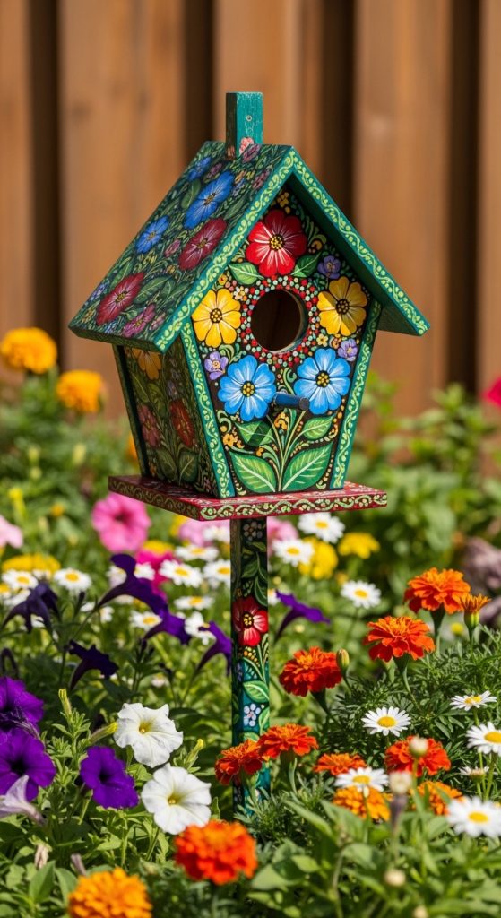 Idea 3: Floral Garden Painted Birdhouse