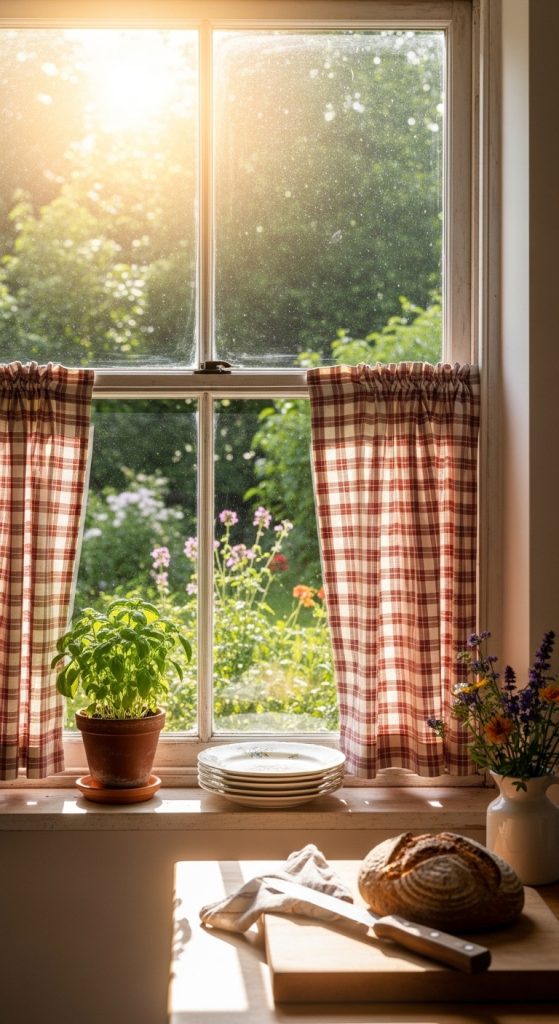 Idea 8: Cafรฉ Style Plaid Curtains