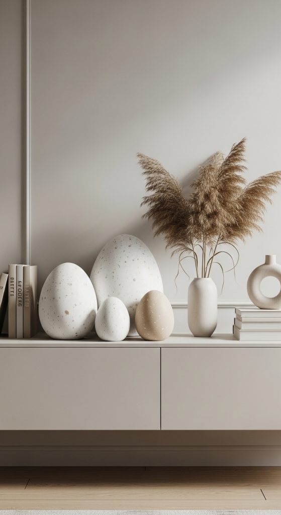 For a high-end designer look, textured plaster eggs are stunning. The raised texture adds depth and visual interest.