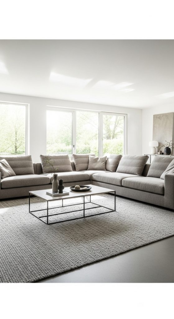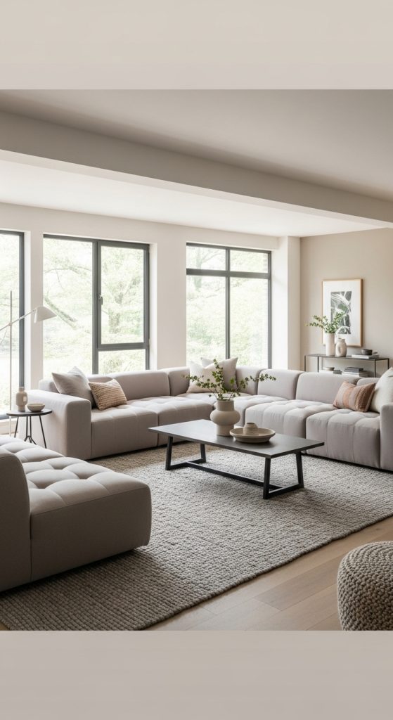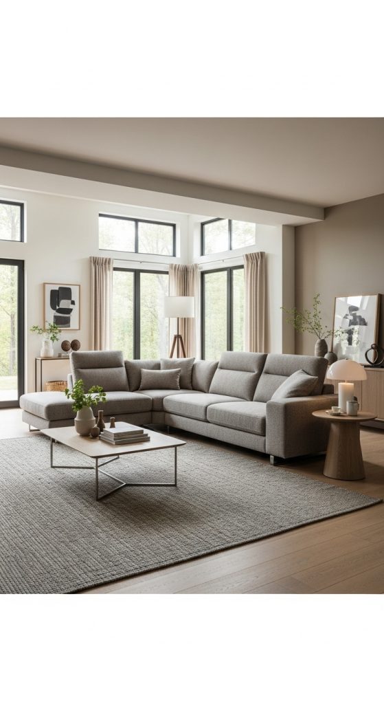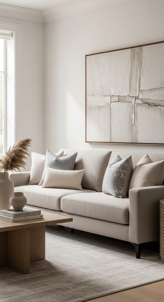This style focuses on sofas in beige, cream, gray, or taupe tones with subtle texture.