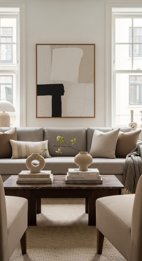 Neutral sofas create a timeless base that allows other design elements to shine.