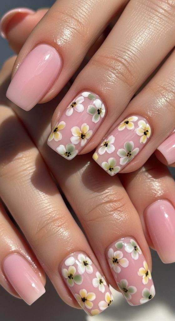 Idea 5: Soft Pink Neutral Floral Nails