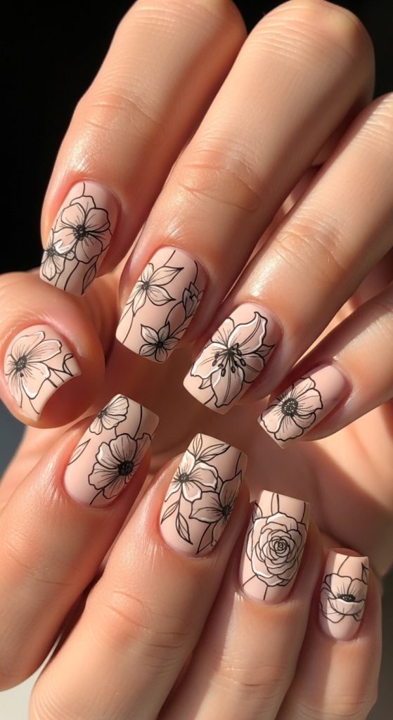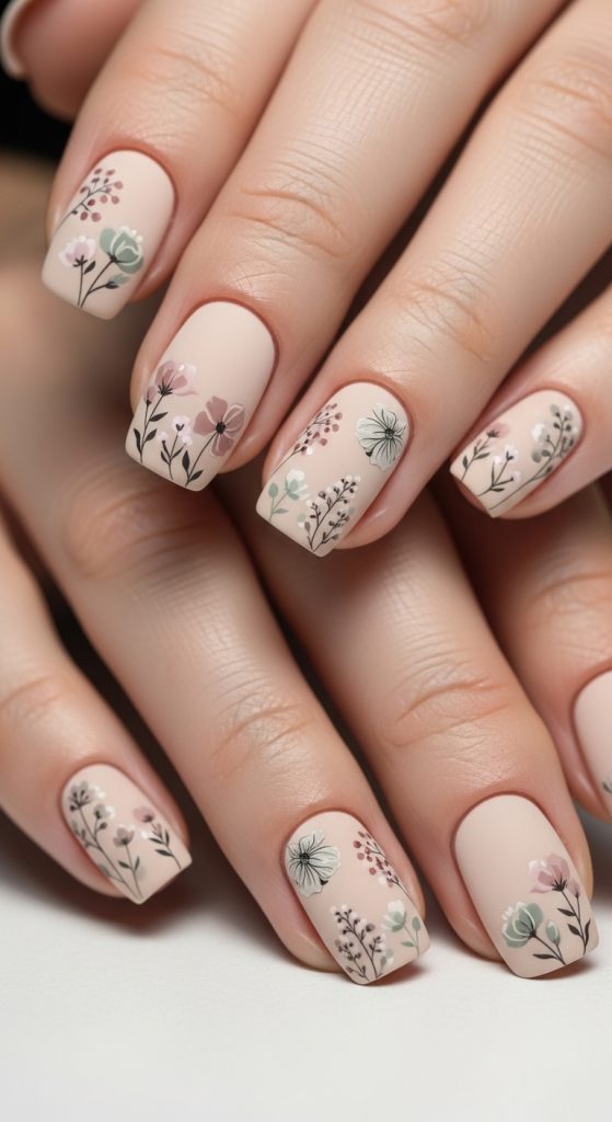 Idea 2: Beige Matte Floral Nails