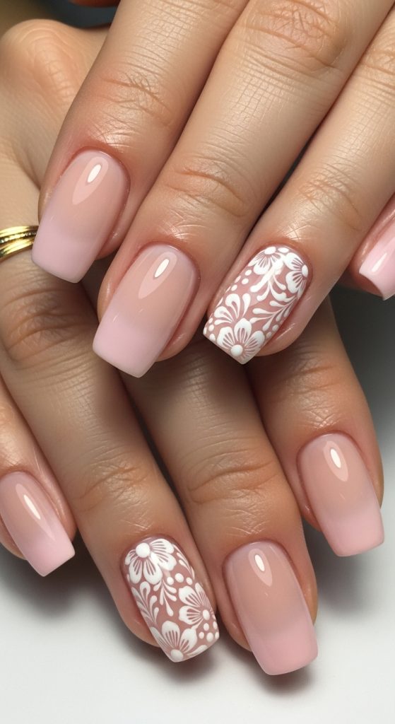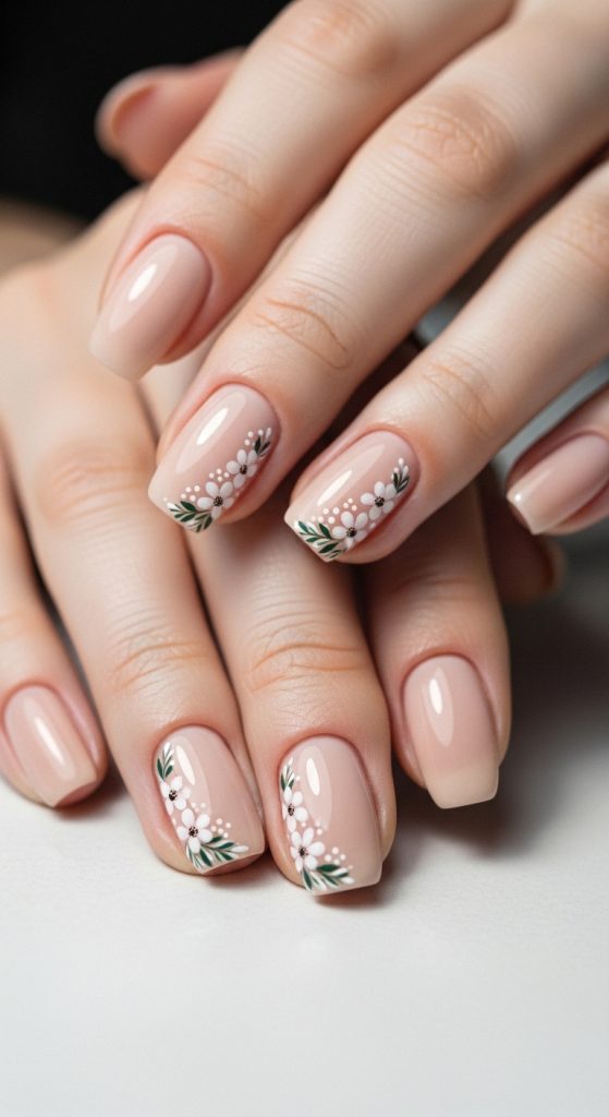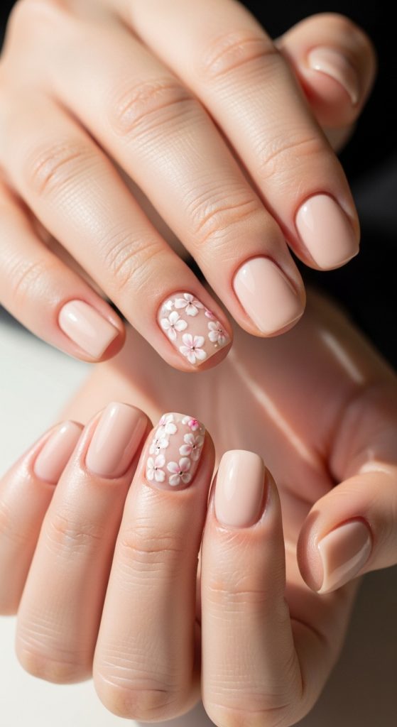 Idea 1: Soft Nude Base with Minimal Floral Accents