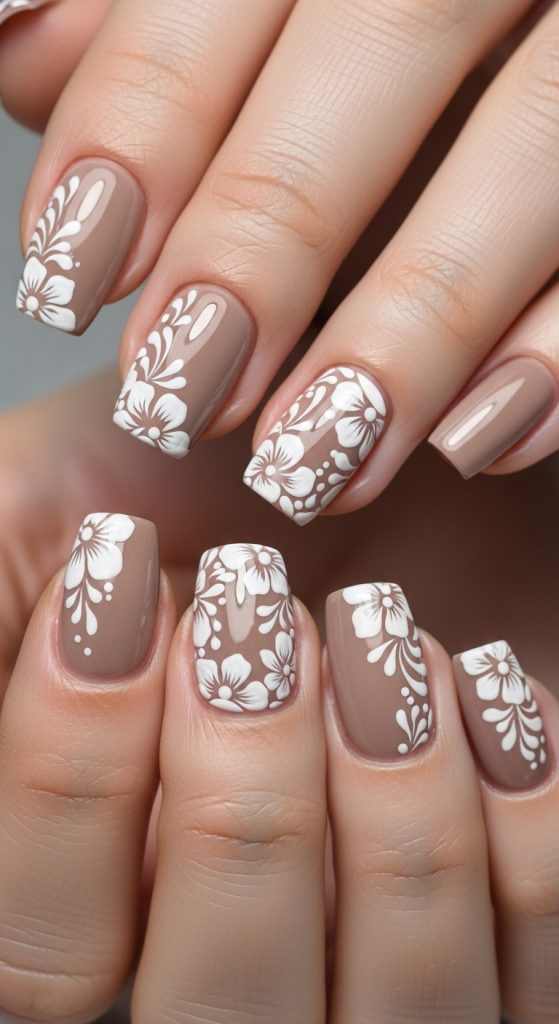 Idea 7: Taupe Base with White Floral Design