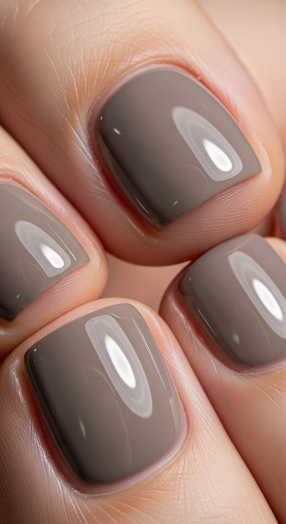 Apply a base coat and taupe polish evenly. Use thin layers and finish with a top coat. This method creates a structured appearance.