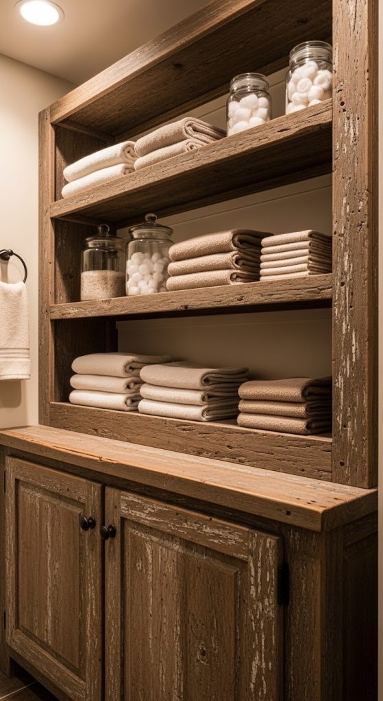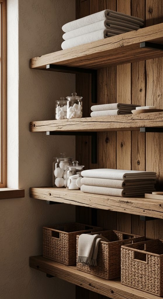 Reclaimed Wood Open Shelving for Linen Storage