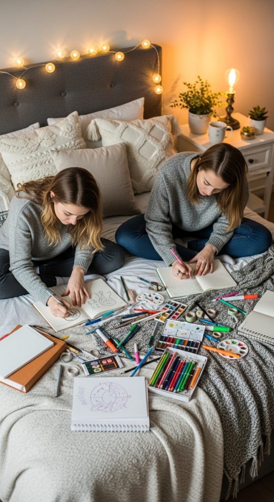 This sleepover idea is low-effort but deeply bonding. It works especially well for people who love music and emotional connection.