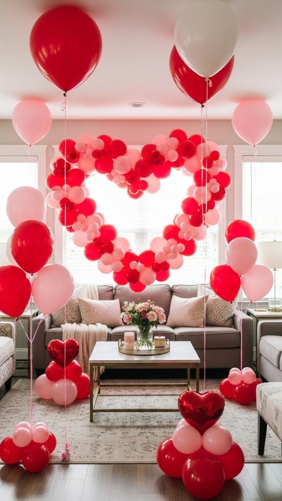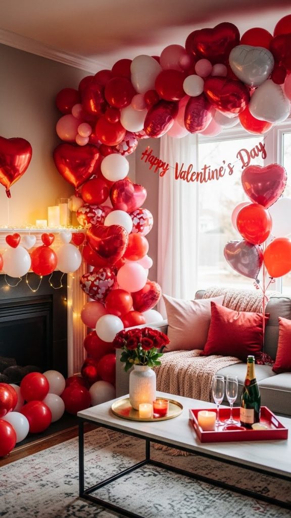 This decoration idea is perfect for people who want a bold, joyful Valentine’s look. Balloons bring a playful energy that balances romance with fun.