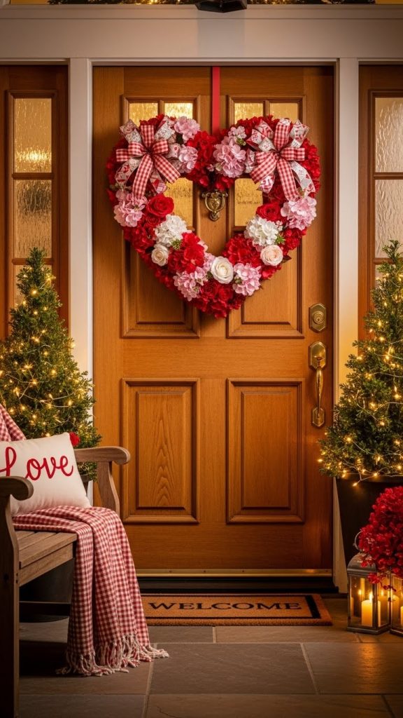 Decorating the entrance sets the tone before anyone even steps inside. Wreaths made of hearts, flowers, or ribbons instantly signal Valentine’s Day.