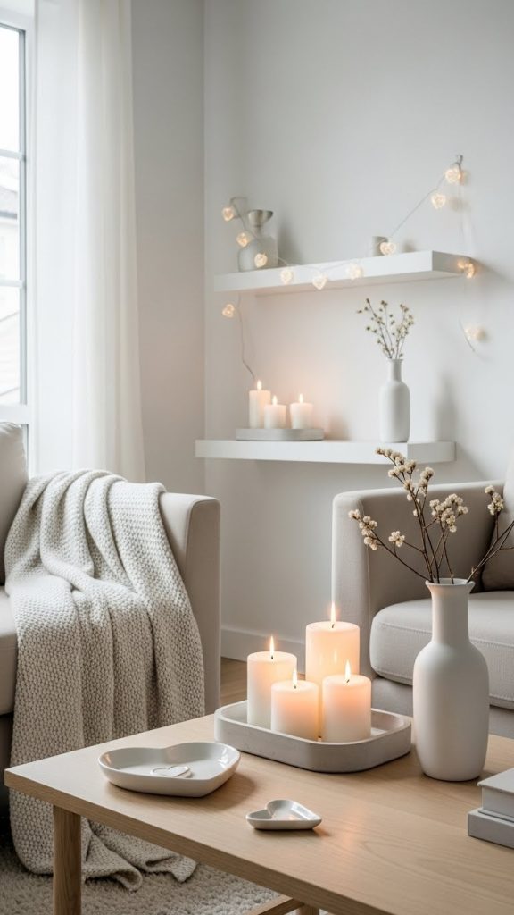 Minimal Valentine’s décor focuses on simplicity. Neutral colors, subtle hearts, and clean arrangements create a calm and modern look.