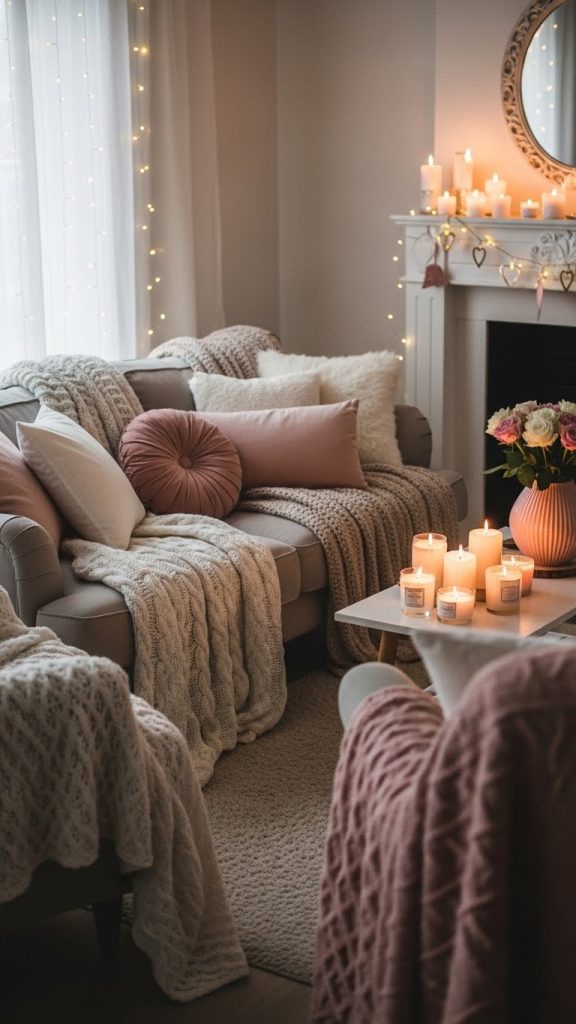 7. Cozy Valentine’s Living Room Décor