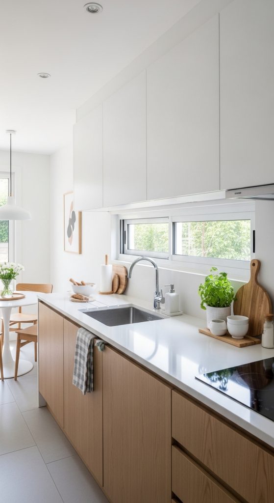 Choose window designs that match the kitchen layout. Keep frames clean and minimal for a modern look. Use simple coverings if needed. Organized placement enhances the overall aesthetic.