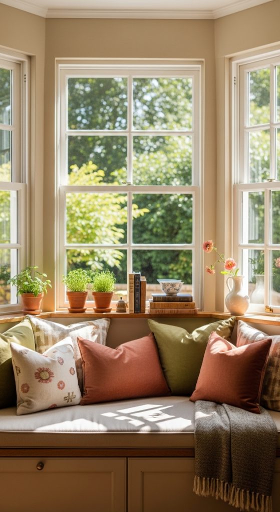 A bay window extends outward from the wall, creating additional space that can be used for seating or storage. This design adds depth and functionality.