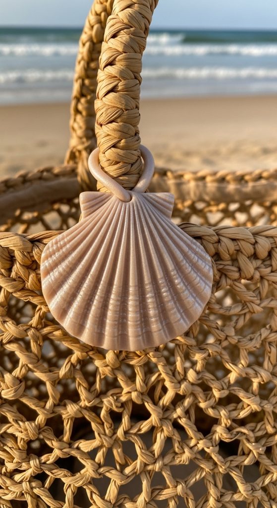 Seashell charms are perfect for summer aesthetics and beach-inspired styling. Whether you’re decorating a beach tote or adding coastal charm to your everyday bag, this design feels light and breezy.