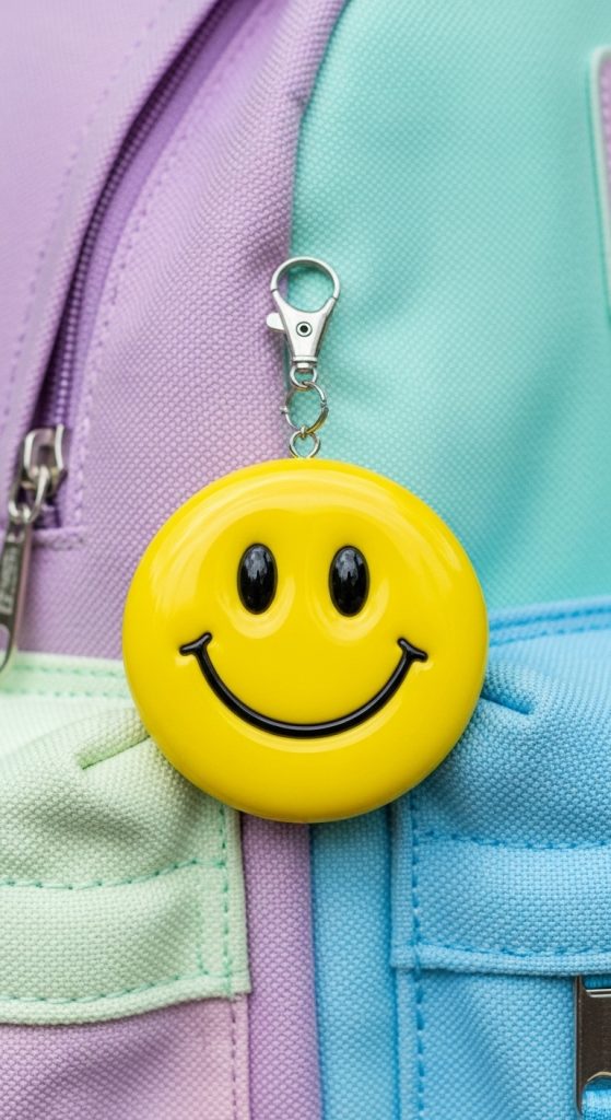 Smiley charms add playful energy to any bag. They’re bright, cheerful, and trendy—perfect for school backpacks or casual tote bags. You can experiment with pastel backgrounds, bold yellow faces, or even holographic finishes.