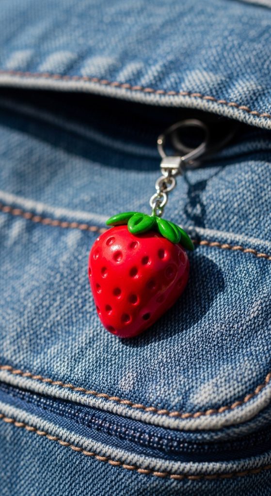 Fruit charms are cute and playful. A strawberry design is especially popular for spring and summer aesthetics.