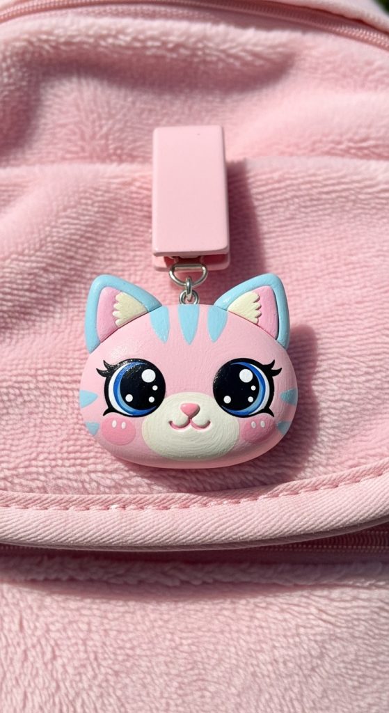 Animal-themed charms are always adorable, and a mini cat face is perfect for pet lovers. This design works well for school backpacks or cute everyday totes.