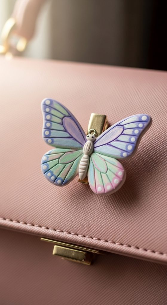 Butterfly charms are delicate, feminine, and perfect for soft aesthetic bags. Whether you love pastel cottagecore, Y2K vibes, or soft girl fashion, a handmade butterfly charm instantly adds charm and movement to your tote or backpack. The wings can be kept simple and flat, or you can gently curve them upward before drying to create a slightly dimensional look.