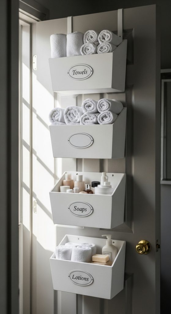 This idea is especially helpful for small bathrooms with limited cabinet space. It keeps essentials organized while doubling as decor.