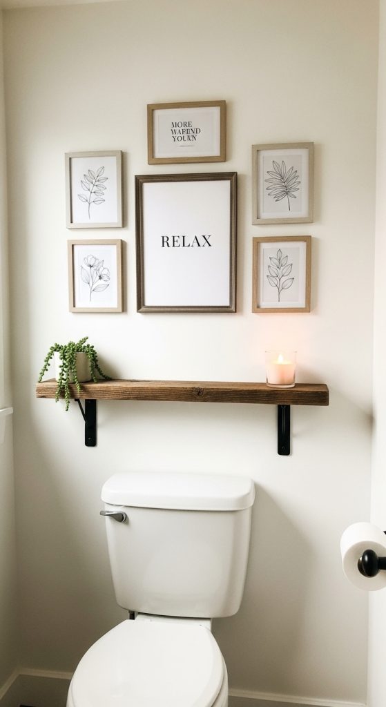 Bathroom wall art adds personality and warmth. Using Dollar Tree frames and printable quotes, you can create a spa-inspired gallery wall for under $10.