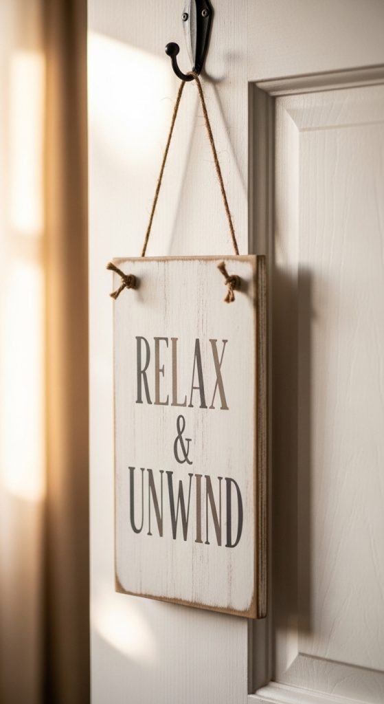 Choose phrases like “Wash Your Hands,” “Relax & Unwind,” or “Bathroom.” Customize colors to match your decor theme.