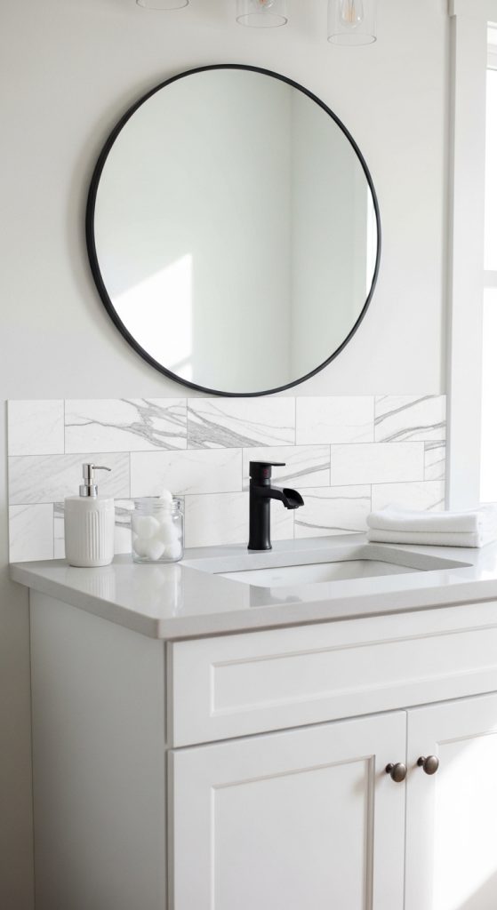Choose marble, subway tile, or mosaic designs to elevate your vanity area.