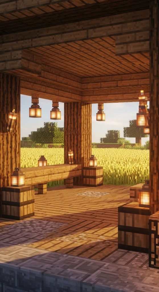 A good Minecraft porch does three key things. First, it adds architectural depth by extending your structure outward. Second, it improves functionality by providing covered space for storage, seating, or decoration. Third, it enhances atmosphere through lighting and detail blocks. Even a small 3×3 extension can dramatically improve your build’s appearance.