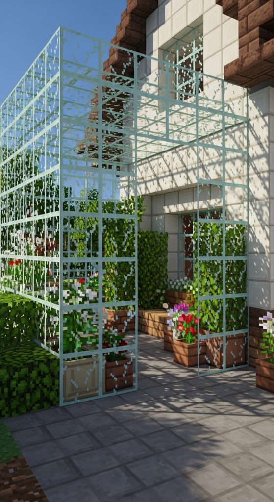 For fantasy-themed builds, an overgrown porch covered in leaves and vines adds magical atmosphere. It feels ancient and mystical.